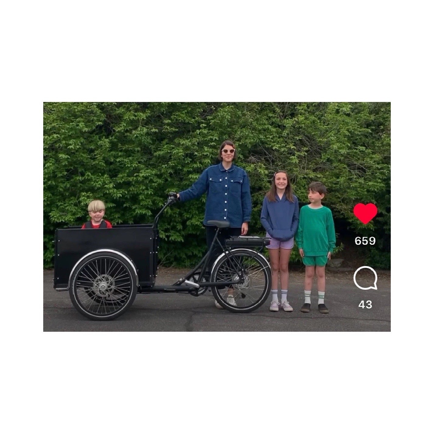 Amanda easily loads all three of her kids into the bike’s spacious box. A quick push-off, and they’re off—pedaling into the sunset like the effortlessly charming protagonists of a very stylish film.